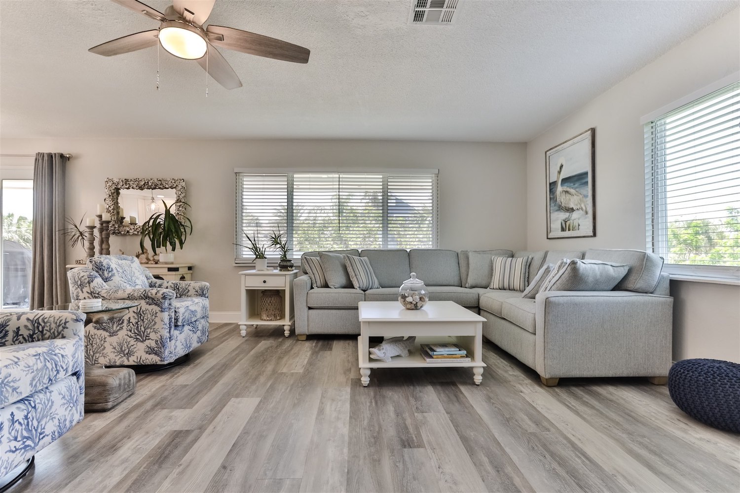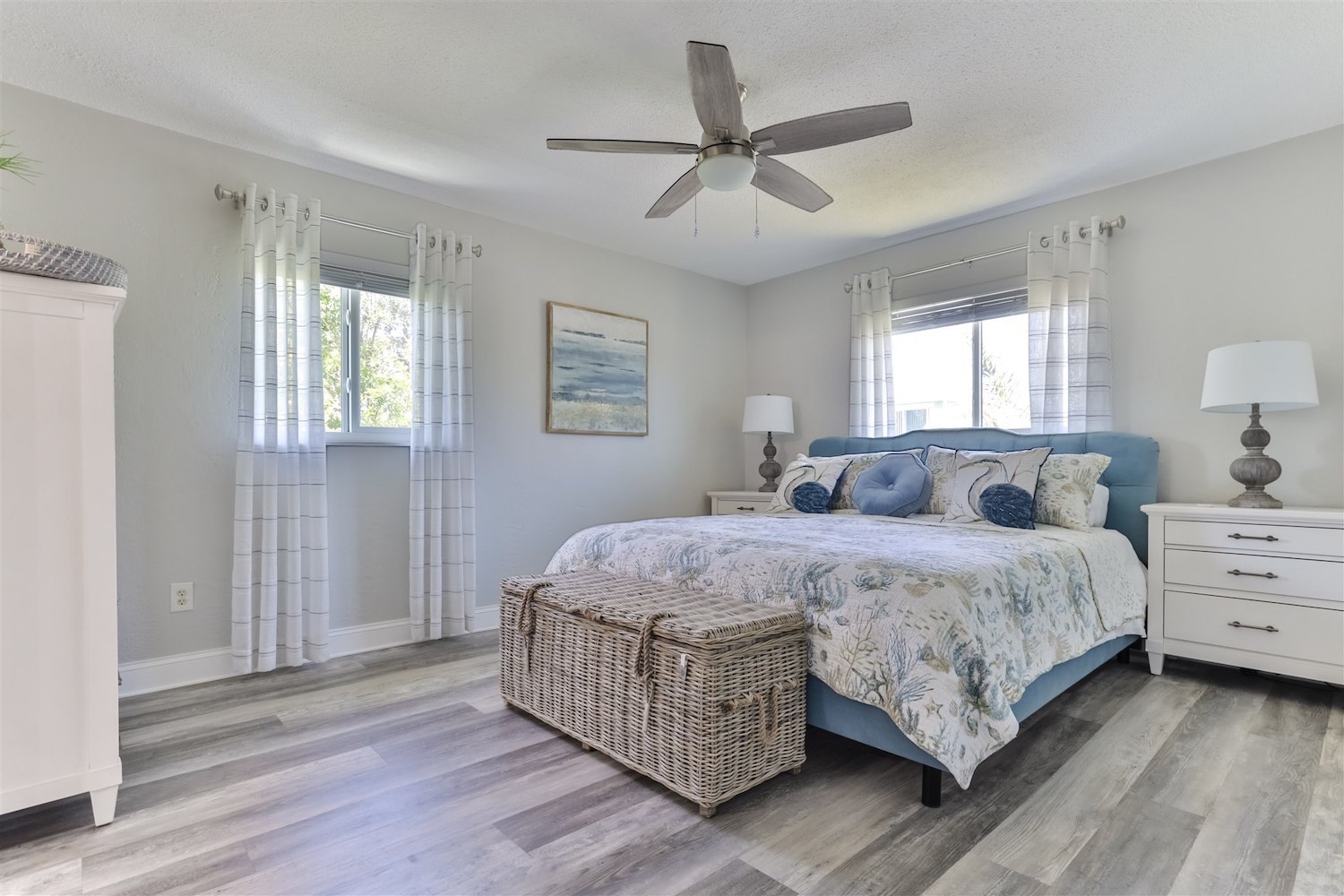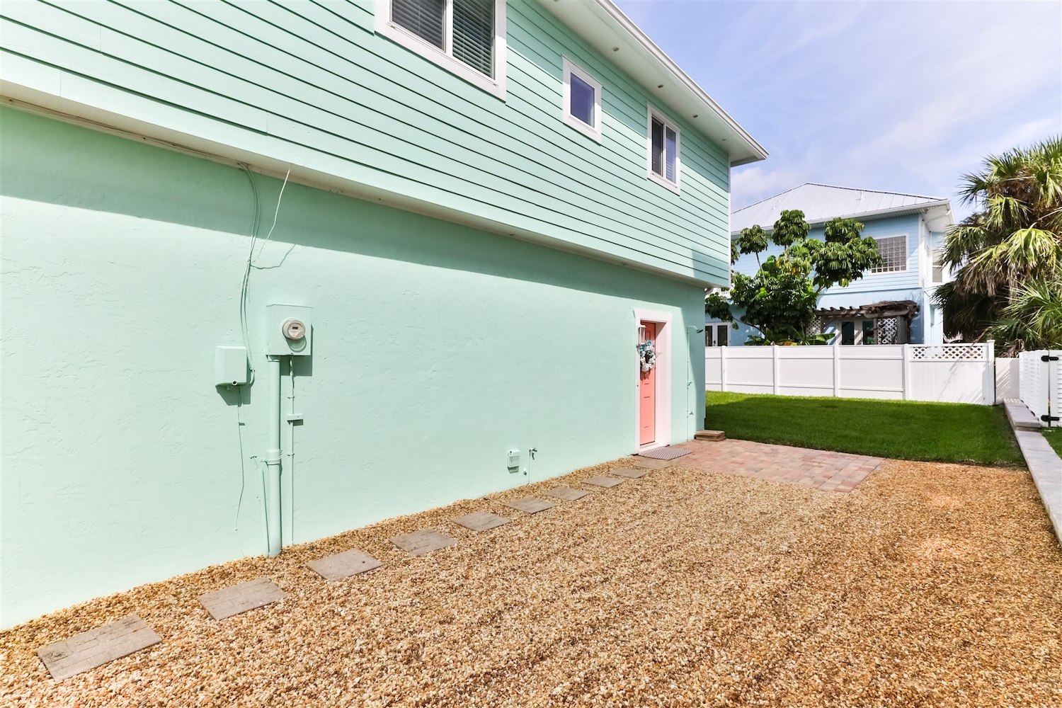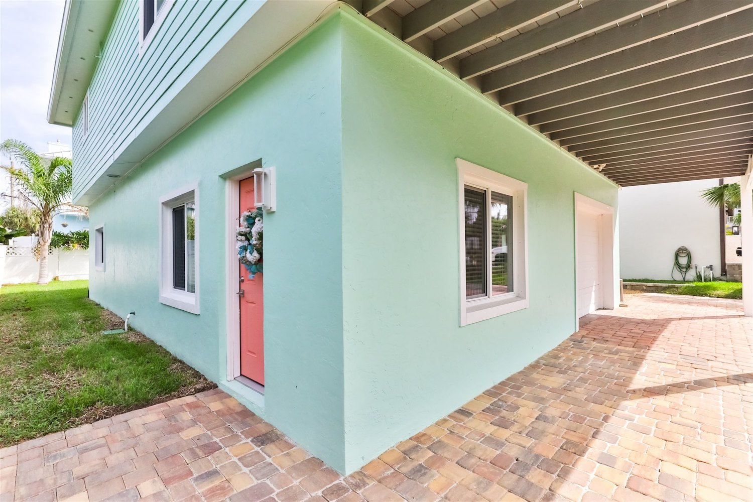 Welcome to your Coastal Paradise at 6823 Engram Road! This Relaxing and Inviting Beach Home is just Steps to the Ocean AND Intracoastal Waterway. Almost every inch has been Updated and Improved. On the outside, this beach retreat is Freshly Painted, new Exterior Doors, Hurricane Impact Windows and French Doors. New Gutters, Irrigation, Pavers and Landscaping. No worries about a New Roof as this one was replaced in 2018 and the A/C units were replaced in 2019 and 2022. If you want to press the Easy Button in making your beachside dreams a reality this home conveys with Furnishings, with minor exclusions. Most furnishings are about One Year Old and were purchased to Fit the Space Perfectly. Living room furniture is Custom and Upholstered in performance fabrics that will make beach living stress free. This home boasts a flexible layout with two Primary Suites, one upstairs and one down. The downstairs In-Law/Guest Suite also features Private Entry, a spacious Living Area, Full Bath, and Bedroom; existing plumbing for a Kitchenette. Make this 1st floor Flex Space for Guest, In-Laws, Work, Work Out, or Play Room. Upstairs you'll find the Main Living area with a Chef's Delight Kitchen, Open Floor Plan Living Room, Dining Room, 2 Large Bedrooms, Master Ensuite, Guest Suite and Powder Room. The upstairs Primary Bathroom has been completely remodeled with No Curb Entry Shower with Glass Doors, finished in Beautiful Large Format Wall Tile and traditional Hexagonal Floor Tile. Be sure to check out our Video Tour of this Beautiful Home and contact a LOCAL New Smyrna Beach Lifestyle Expert Broker today!