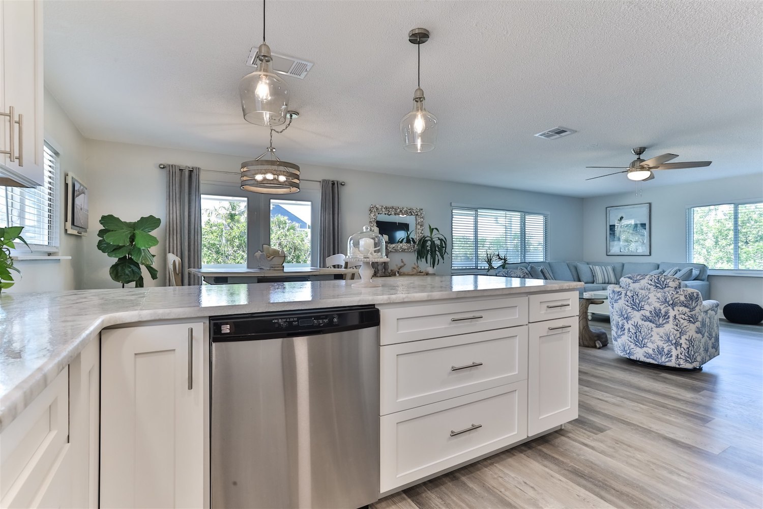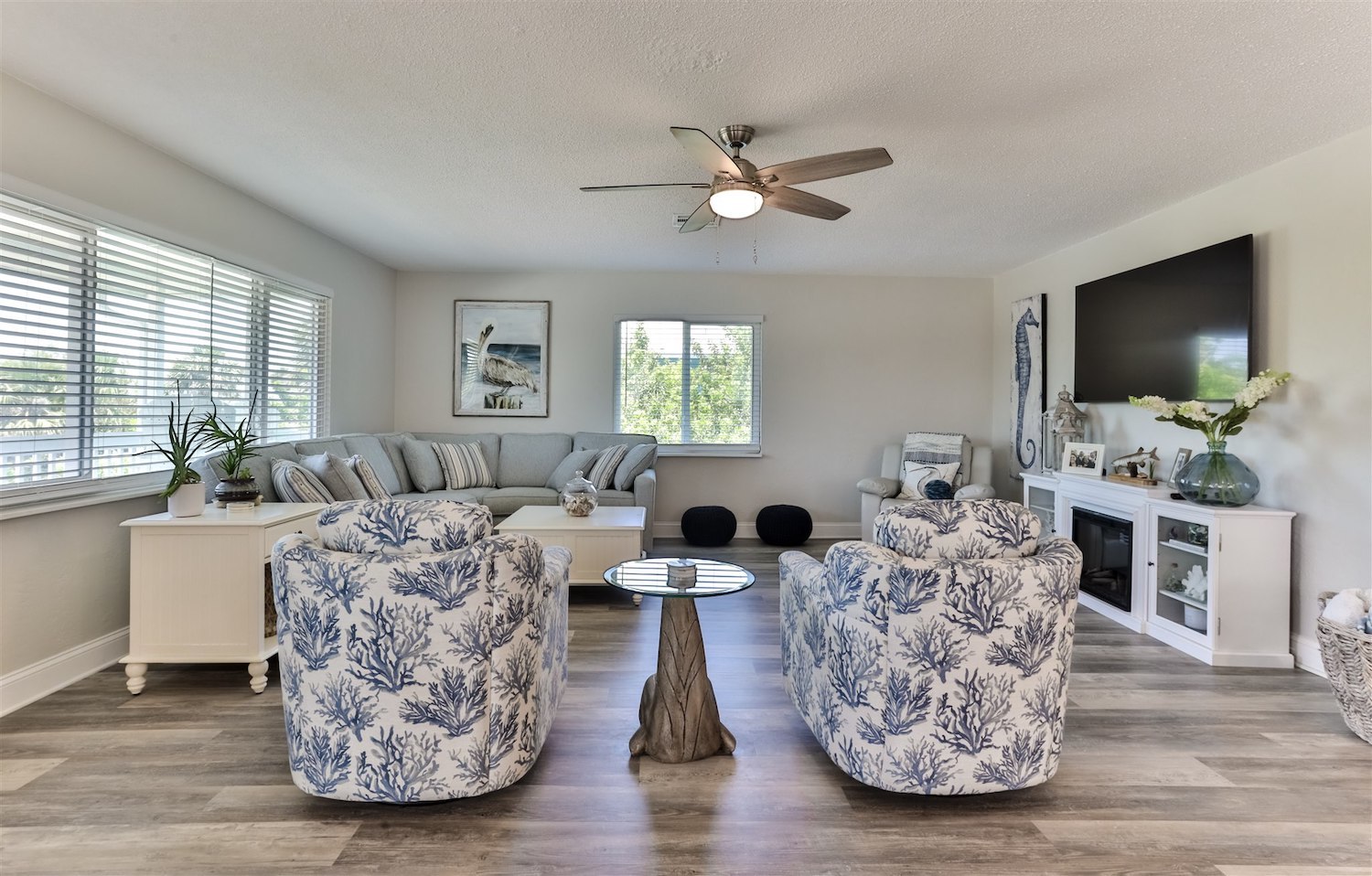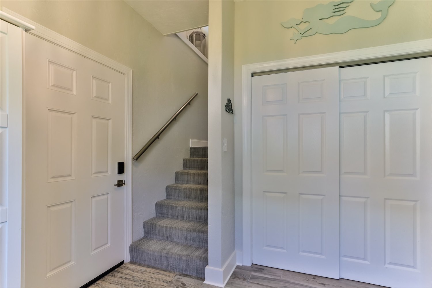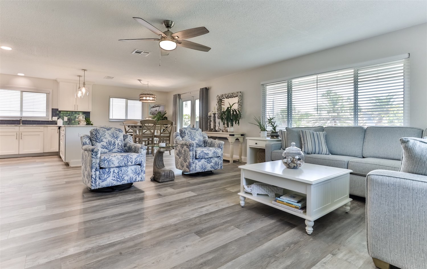 Welcome to your Coastal Paradise at 6823 Engram Road! This Relaxing and Inviting Beach Home is just Steps to the Ocean AND Intracoastal Waterway. Almost every inch has been Updated and Improved. On the outside, this beach retreat is Freshly Painted, new Exterior Doors, Hurricane Impact Windows and French Doors. New Gutters, Irrigation, Pavers and Landscaping. No worries about a New Roof as this one was replaced in 2018 and the A/C units were replaced in 2019 and 2022. If you want to press the Easy Button in making your beachside dreams a reality this home conveys with Furnishings, with minor exclusions. Most furnishings are about One Year Old and were purchased to Fit the Space Perfectly. Living room furniture is Custom and Upholstered in performance fabrics that will make beach living stress free. This home boasts a flexible layout with two Primary Suites, one upstairs and one down. The downstairs In-Law/Guest Suite also features Private Entry, a spacious Living Area, Full Bath, and Bedroom; existing plumbing for a Kitchenette. Make this 1st floor Flex Space for Guest, In-Laws, Work, Work Out, or Play Room. Upstairs you'll find the Main Living area with a Chef's Delight Kitchen, Open Floor Plan Living Room, Dining Room, 2 Large Bedrooms, Master Ensuite, Guest Suite and Powder Room. The upstairs Primary Bathroom has been completely remodeled with No Curb Entry Shower with Glass Doors, finished in Beautiful Large Format Wall Tile and traditional Hexagonal Floor Tile. Be sure to check out our Video Tour of this Beautiful Home and contact a LOCAL New Smyrna Beach Lifestyle Expert Broker today!