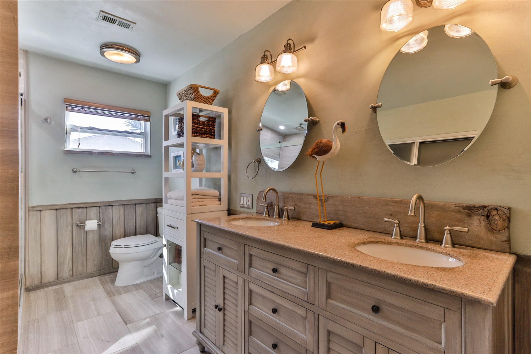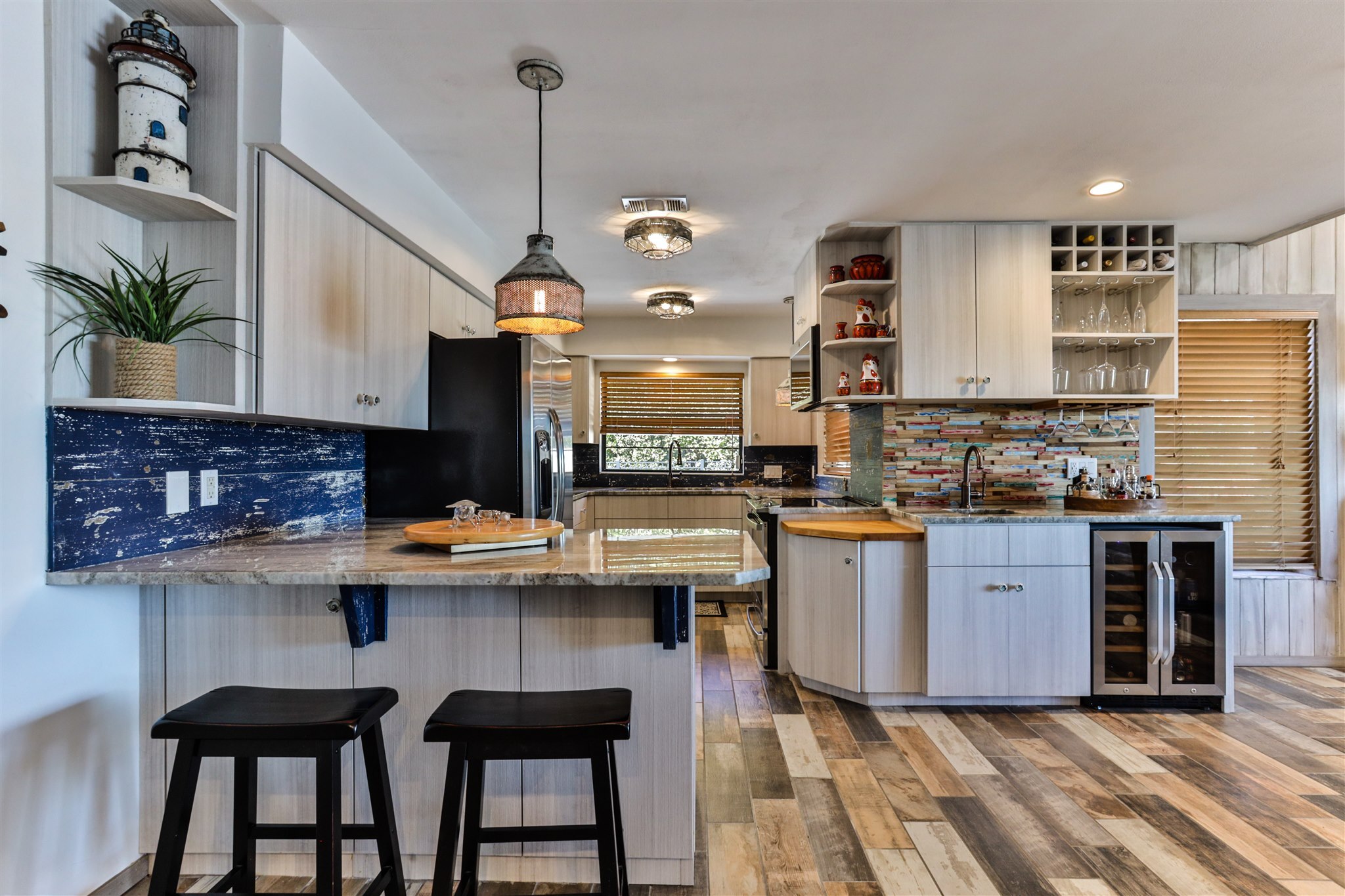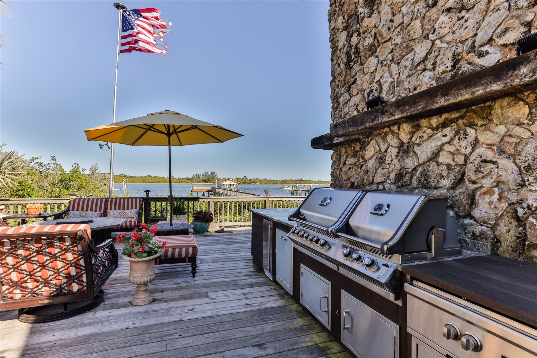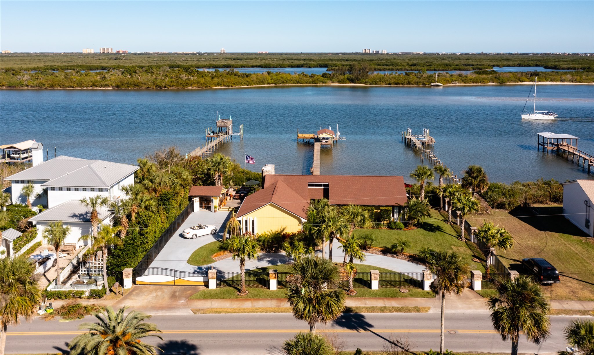 | STOP Wishin' and START Fishin’! Enjoy your dream life on the beautiful Intracostal Waterway of Florida’s East Coast. For the Buyer who seeks peace, quiet, nature and the best Red Fishing in the world renowned Mosquito Lagoon or a quick boat ride north to Ponce Inlet. This gorgeous intracoastal-front home is located on the northern edge of the Canaveral National Seashore and southern tip of New Smyrna Beach. Cast a line into pristine waters from your private 150 ft dock; complete with covered seating area, spacious platform, 2 boat lifts (2500 & 6500 lb capacity), utility sink & fish cutting station. Watch dolphins play in the wake of sailboats cruising past. Leave your boat and jet skis right in your backyard. This tranquil waterway transports you to the Florida of yesteryear, just minutes from sandy beaches and amenities of New Smyrna Beach. This area is a hidden gem, located directly on the ICW with 120 riverfront footage. The 1,864 sq ft home (totaling 4,060 sq ft indoor/outdoor living space) offers 3 bedrooms, 2 baths, built-in wine cooler, stainless steel appliances, coffee bar & bar. White washed walls, chic beach flooring and backsplashes make for a fun vibe. Entertain your guests on 1,700 sq ft waterfront deck, complete with 2 Napoleon propane grills, oversized propane burner, kegerator, ice maker, custom Brazilian cabinetry, sink with cutting board & granite countertops. Open up the custom tiki bar and enjoy cocktails with friends & family. The large circular driveway with gated entrances has ample room for parking. A fully fenced property makes this home feel truly private & protected. 2 car garage fully air-conditioned with custom shelving throughout. Roof was replaced in 2017, and exterior of home was fully painted vibrant “Naples Yellow” in 2022, enhanced by mature lush tropical landscape with privacy hedge. This home is a one-of-a-kind, double lotted gem in one of the best neighborhoods just south of New Smyrna Beach. Be sure to see our virtual tour! ;Water: City | ||||||||||