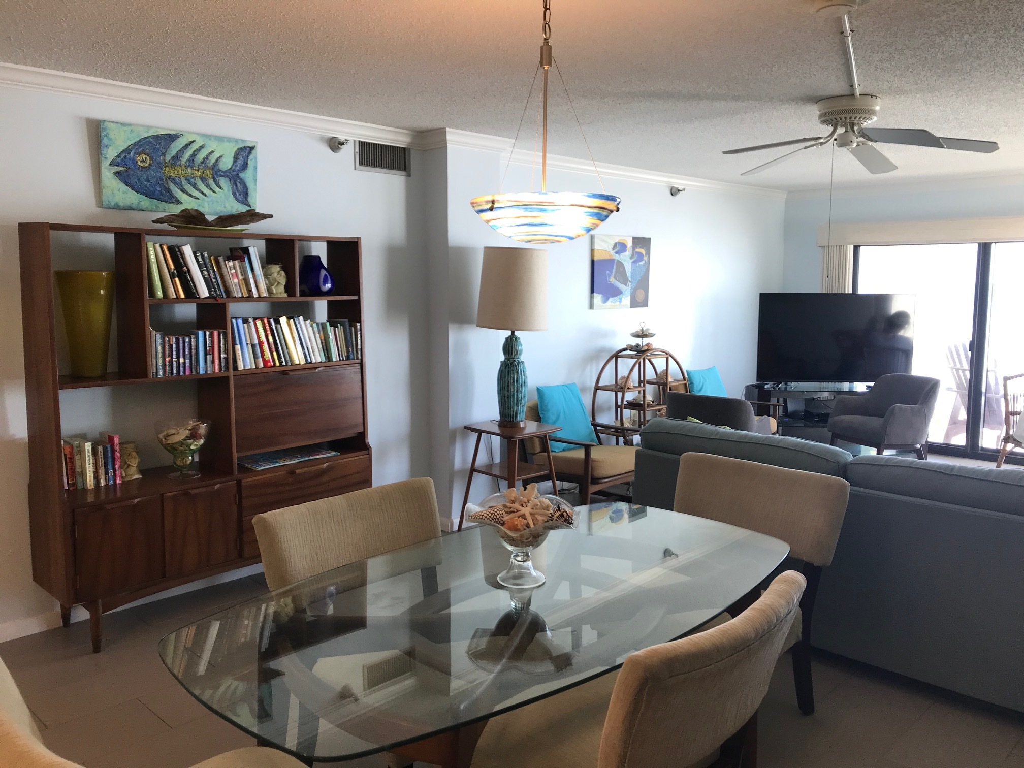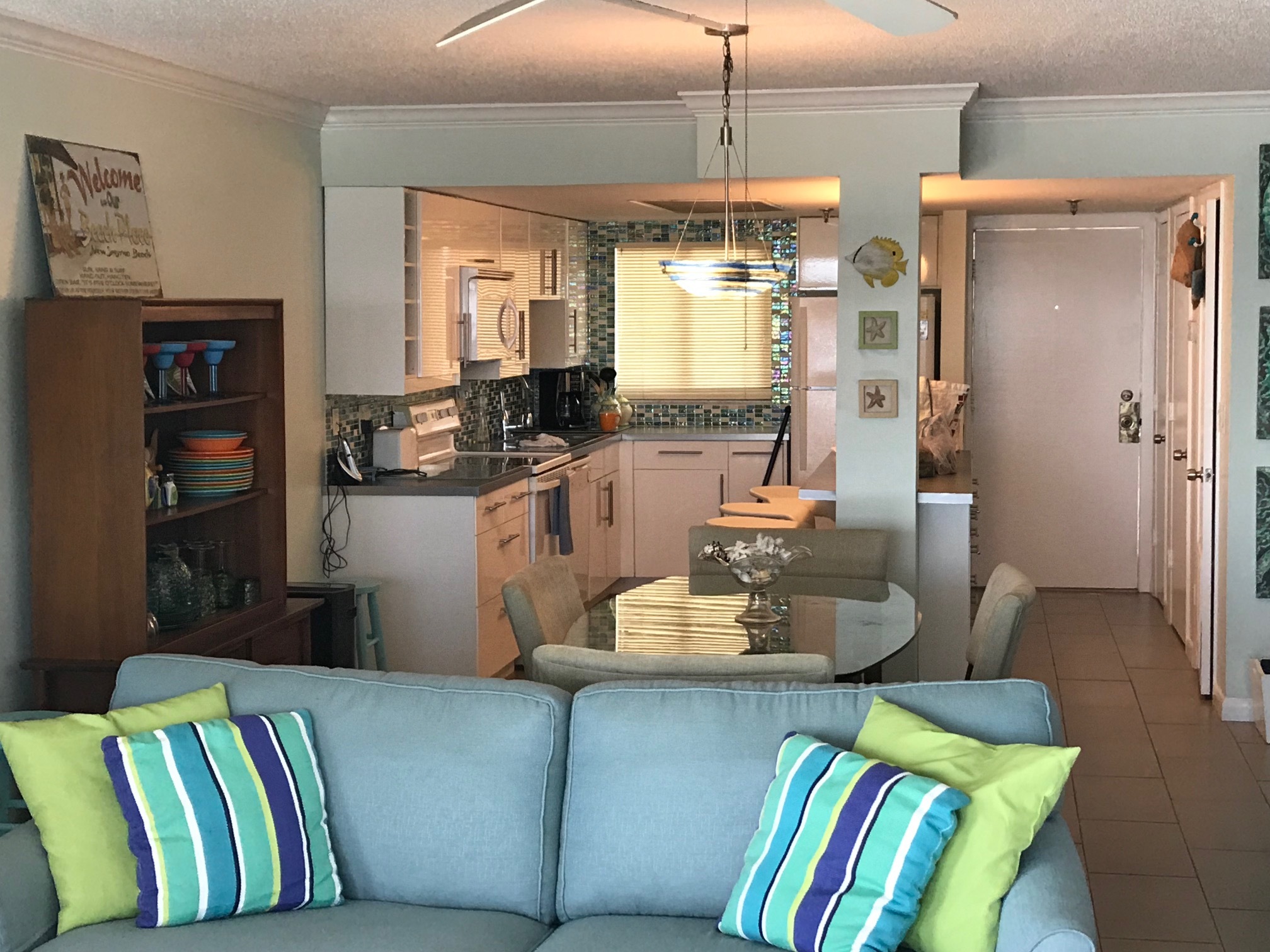 This is on the quiet, dune covered non-driving beach and is perfect for a family vacation. Wake up to the sound of waves in the master bedroom that is directly on the ocean and put the kids in the second "bunk bedroom" that sleeps up to 5 and has its own TV. They can also entertain themselves with family games and books. There is also a comfortable pull out couch in the main room and a large open and bright Ikea kitchen. There is an extra storage closet with beach chairs and toys. There is a brand new washer and dryer located inside the unit for your convenience. The complex is in a great fully residential location and is within biking distance to the Canaveral National Seashore, which is one of the largest stretches of undeveloped coastline on the east coast of Florida.