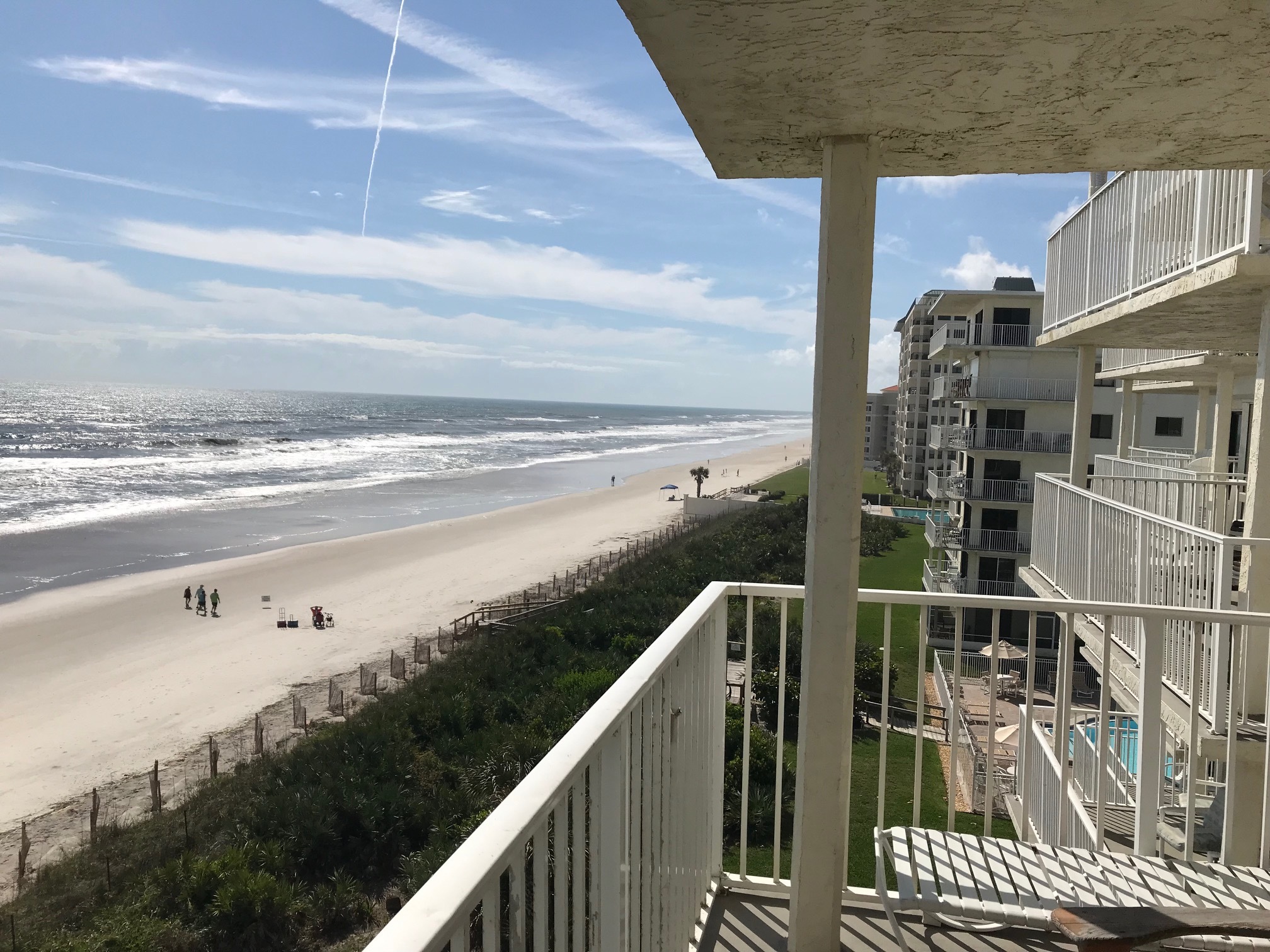 You’ll have to decide where you want to spend all your time when you vacation here. Indoors you’ll treasure the comfort of our tastefully decorated and well equipped 2 bedroom/2 bathroom and 3 bedroom/3 bathroom units. Every unit has a well-stocked kitchen with all of the major appliances and all of the towels and linens your family will need. Outdoors, experience the hospitality of what many travelers have dubbed the “Friendliest Complex in New Smyrna Beach”. At just six levels, every condo on every floor at Shorehom by the Sea is easily accessed. Relish the seasonally heated pool, large gated pool deck, manicured grounds, and the path through the sea oats speckled dunes to the quiet beach. Built in 1979, this attractive complex has only 58 units.